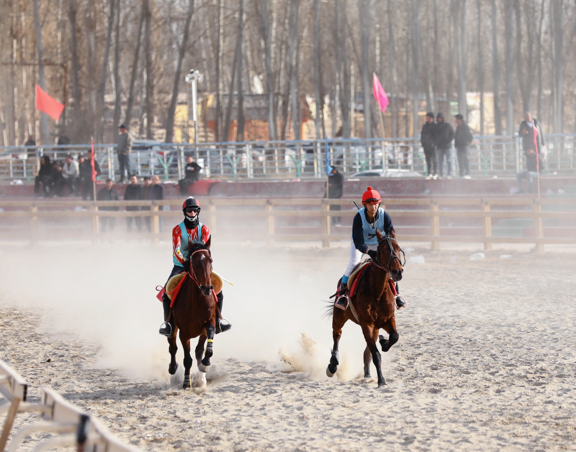 当日,5000米速度赛首先开赛。发令动静的瞬间,骑手们身着特征服饰策马飞跃,快马四蹄翻飞踏起阵阵尘土,赛道上选手们你追我赶、互不示弱,用速度与耐力打开首轮竞赛,展现出精深的骑术功底与高昂的竞技状态。